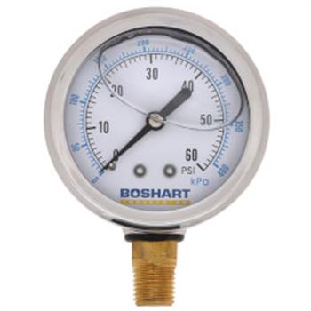 LIQ PRESS GAUGE 15# 1/4" LM 2.5" Dial, SS Case