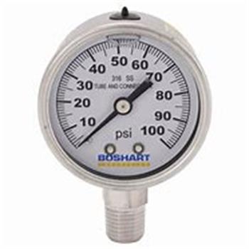 PRESS GAUGE 100psi, 1/4" LM all-stainless, 2.5" Dial