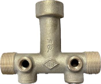 PU-T-07TK-25SF2 - TANK TEE 1" x 3 5/8" Leg FT 2" x 1/2" drains, NL Brass